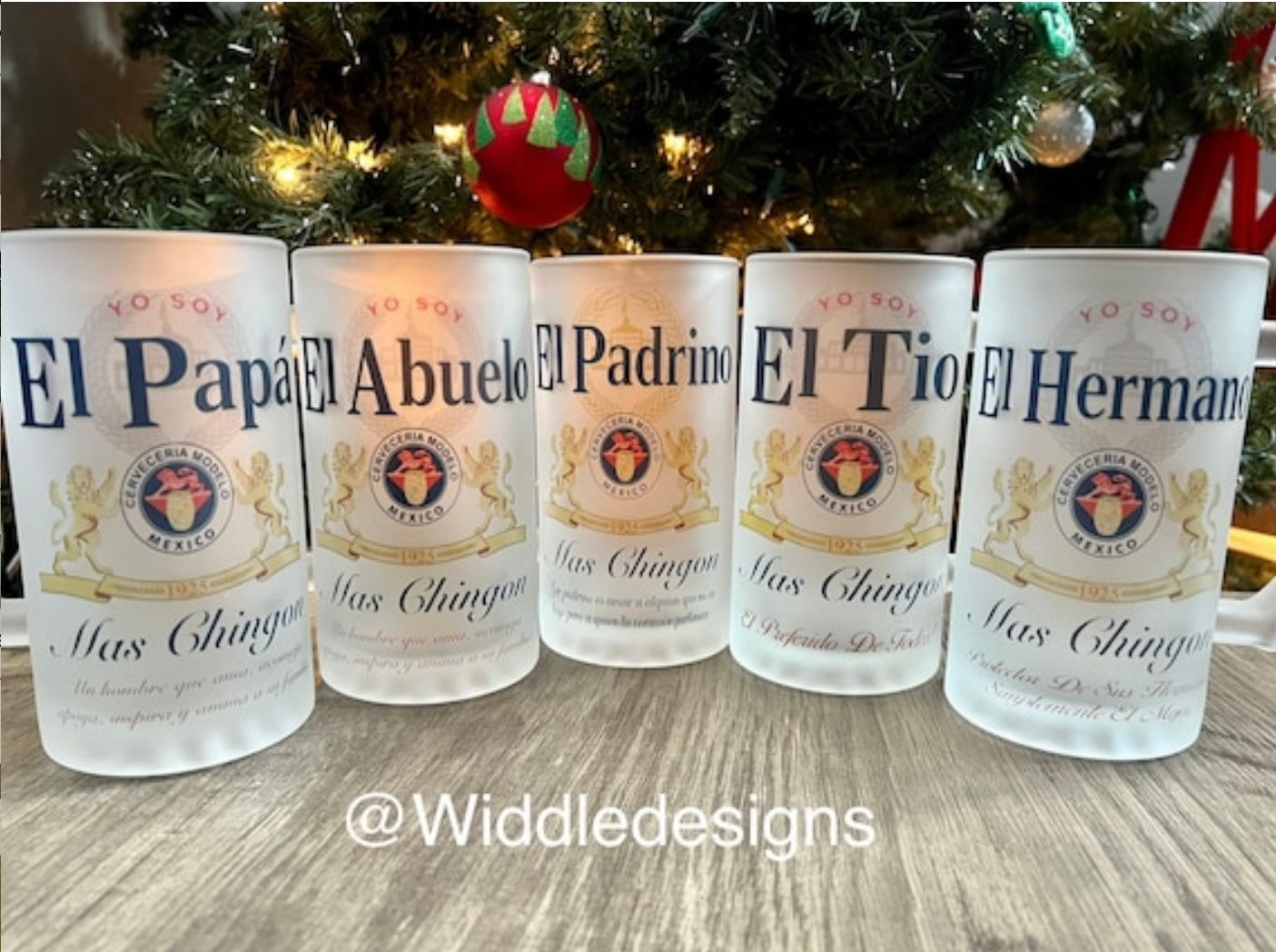 Papa, Padrino, godparent, grandparent, abuelo, Tio, Hermano 16oz frosted beer mug